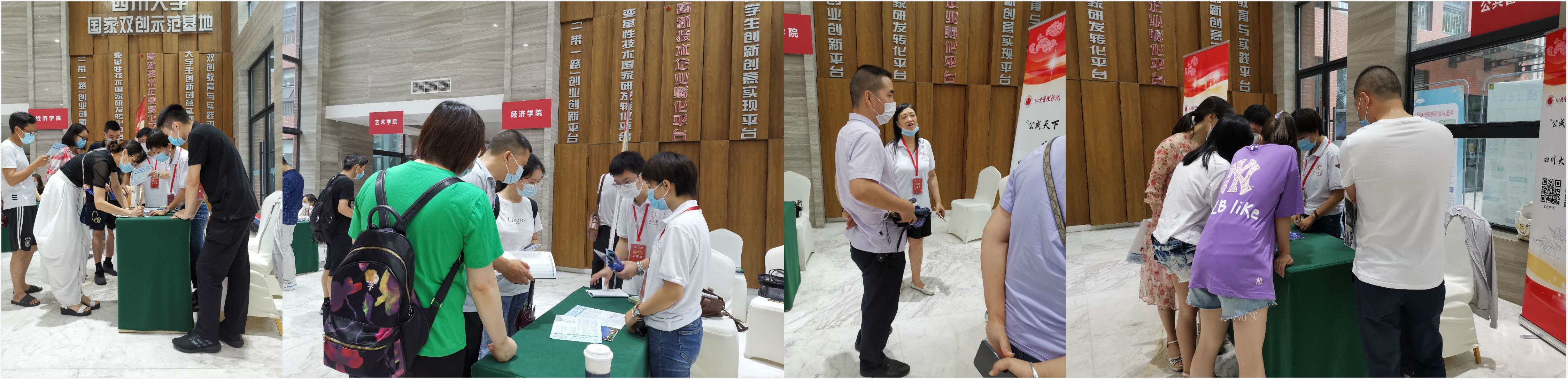 咨询期间,梁斌副董事长、招生办公室张磊主任、川大科产集团王金友总经理等领导也来到公司咨询点,对招生咨询团队的辛勤工作给予了肯定,勉励咨询团队充分介绍公司专业优势,提供细致中肯的咨询,吸引更多的优秀学子来川大学习。