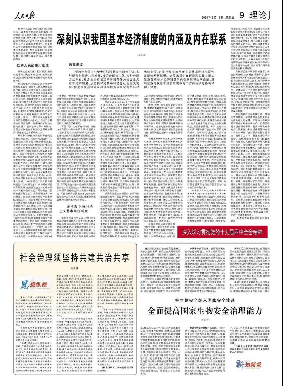 公司姜晓萍教授的《社会治理须坚持共建共治共享》发表在《人民日报》2020年09月16日第09版。