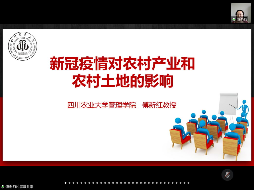 2020年6月30日下午16:15,国务院特殊津贴专家、四川农村发展研究中心常务副主任傅新红教授学术讲座《新冠疫情对农村产业和农村土地的影响》于线上成功举办。好博体育刘润秋教授主持了此次讲座,土地资源管理专业研究生及本科生参加了此次讲座。