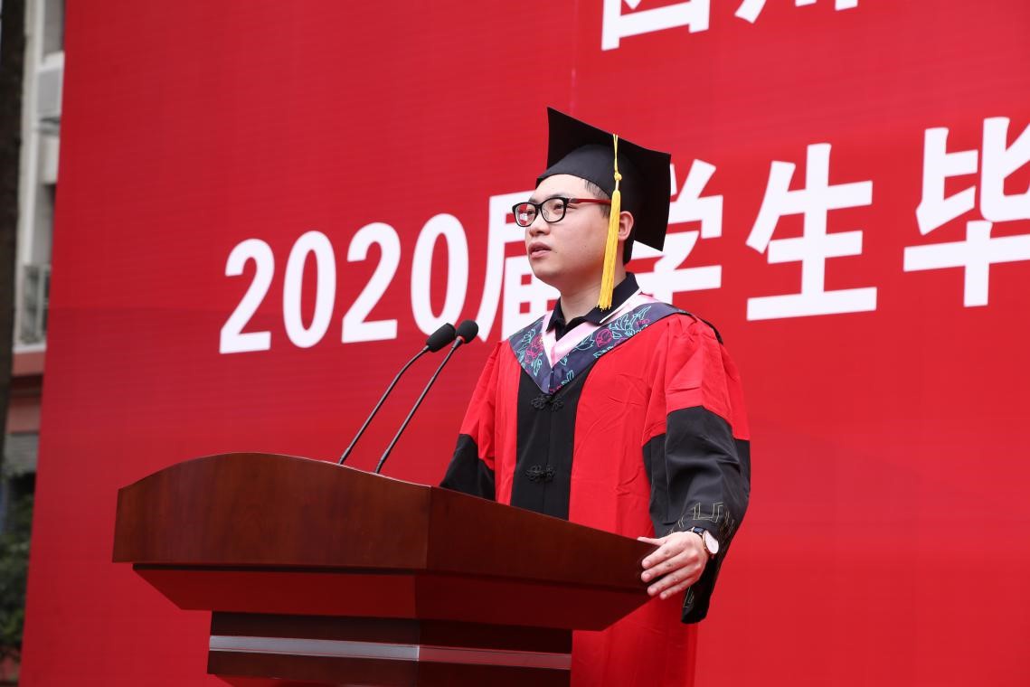 社会保障专业硕士王贤涛同学、信息资源管理专业本科生孙国烨同学从自己的角色出发,以毕业当下的所思所感,代表全体毕业生向辛勤帮助同学们成长进步的老师们表示由衷的感谢和真挚的祝福。
