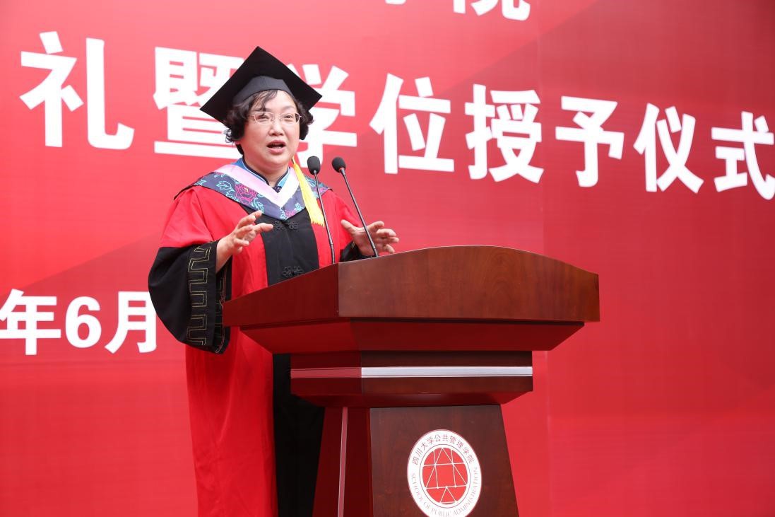 典礼在庄严的国歌声中开启,公司党委书记姜晓萍教授代表公司向圆满完成学业的2020届毕业生表达了衷心祝贺和美好祝愿。姜晓萍教授在致辞中勉励毕业生要培养“三力”,即走向社会、走向卓越的能力;勇对挫折、提升逆商的努力;坚持不懈、千锤百炼的定力。同时,姜晓萍教授还强调同学们要永怀仁爱之心,培养责任之心,追求包容之心,期望从公管走出的每一位毕业生既要铭记成为国家栋梁的责任,更要在未来走得更好、走得更远、走得快乐。
