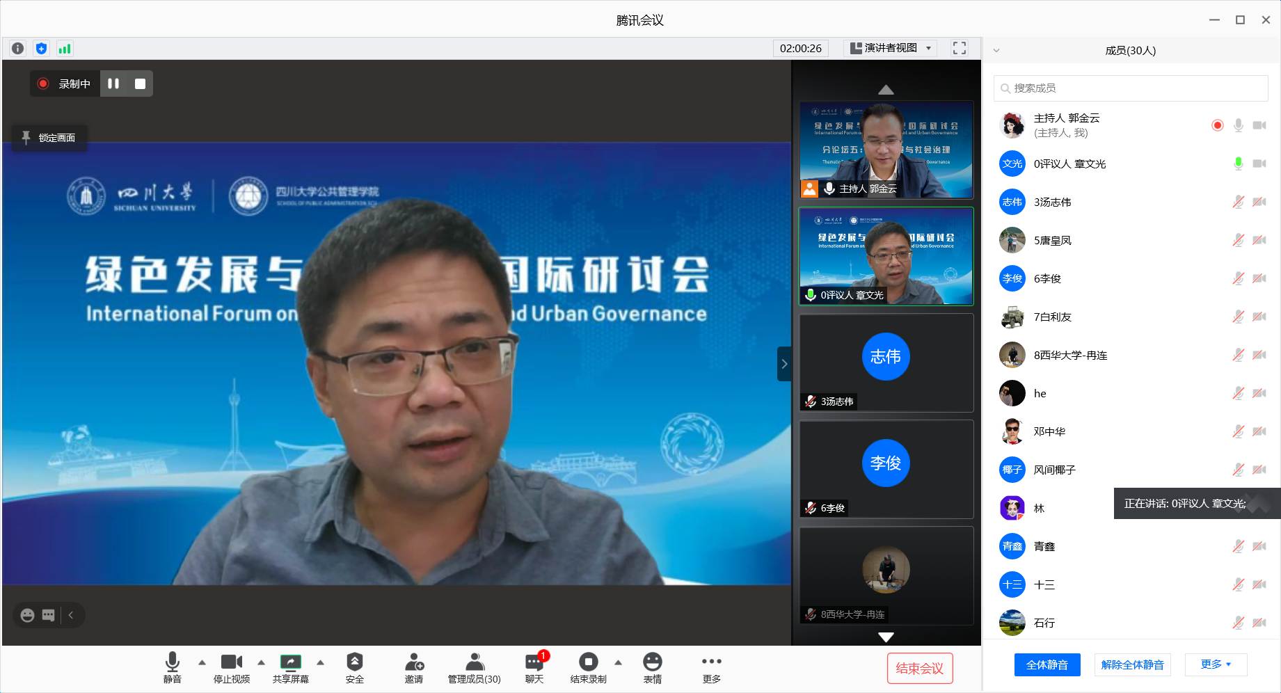 “城市发展与城市治理”分论坛代表、好博体育韦仁忠研究员表示,参与论坛七位代表的报告均贴近现实,视角新颖,理论前沿,分别从不同的视角深入挖掘,研究主题涉及风险治理、边境治理、社区治理,既有量化研究,又有质性研究。韦老师总结道西部是绿色治理的重点,希望更多的专家参与到西部社会治理,提供决策参考和智力支持。