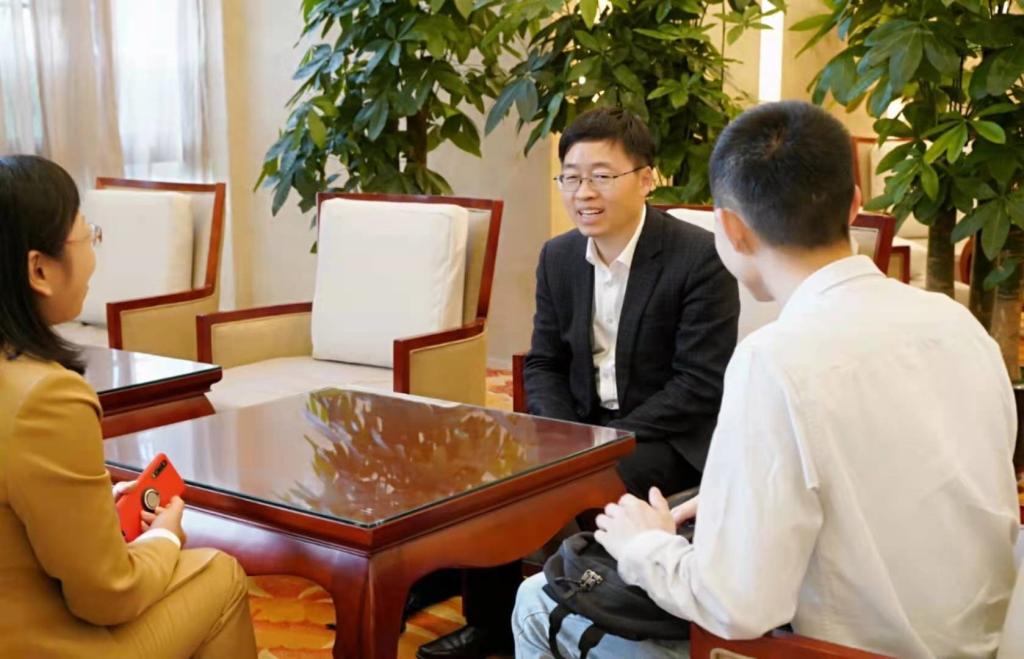 龙花楼研究员(中)接受公司刘润秋教授(左)、黄志兵博士(右)采访