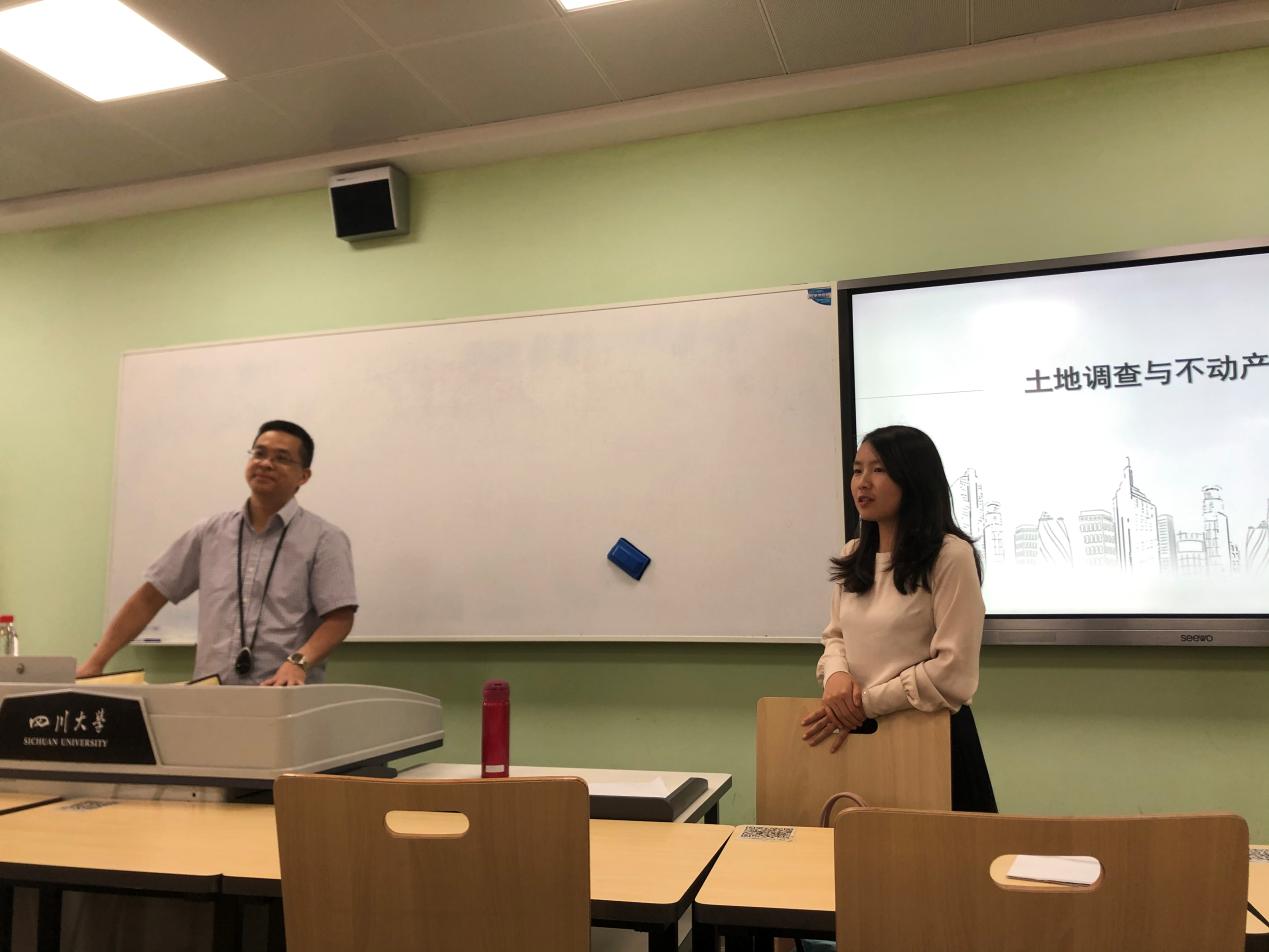2021年6月2日下午13:50,为了丰富《地籍管理》课程形式,延展教学内容,赵茜宇老师邀请了四川省自然资源厅不动产登记中心副主任、研究员王玉川,于江安校区第一教学楼D303教室为同学们讲述土地调查与不动产登记相关内容。赵茜宇老师首先简要介绍了王主任和本次课程主题,重申了课堂纪律。尔后,课程在赵茜宇老师的主持下和同学们的热烈掌声中正式开始。