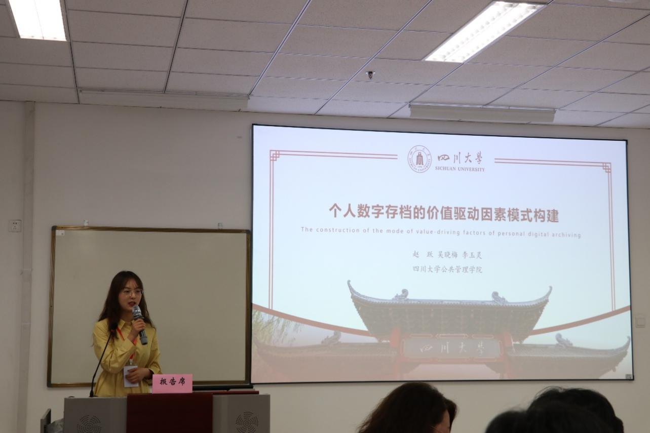 秘书档案学系赵跃副研究员携员工吴晓梅和李玉灵在分会场主题做了“个人数字存档的价值驱动因素模式构建”学术报告,指出数字时代个人数字材料的保存充斥着多类风险,个人层面的数字材料保存问题受到广泛关注。赵跃副研究员率团队利用访谈法和扎根理论,探究个人数字存档行为背后的价值驱动因素,发现了个人数字存档的价值驱动模式。赵跃副研究员在平行研讨会之“青年学者交流”部分,围绕“好博档案学专业‘学年课’建设实践”进行了主题发言,并与青年学者就新文科建设背景下的档案学专业教育问题进行了广泛深入的交流和讨论。