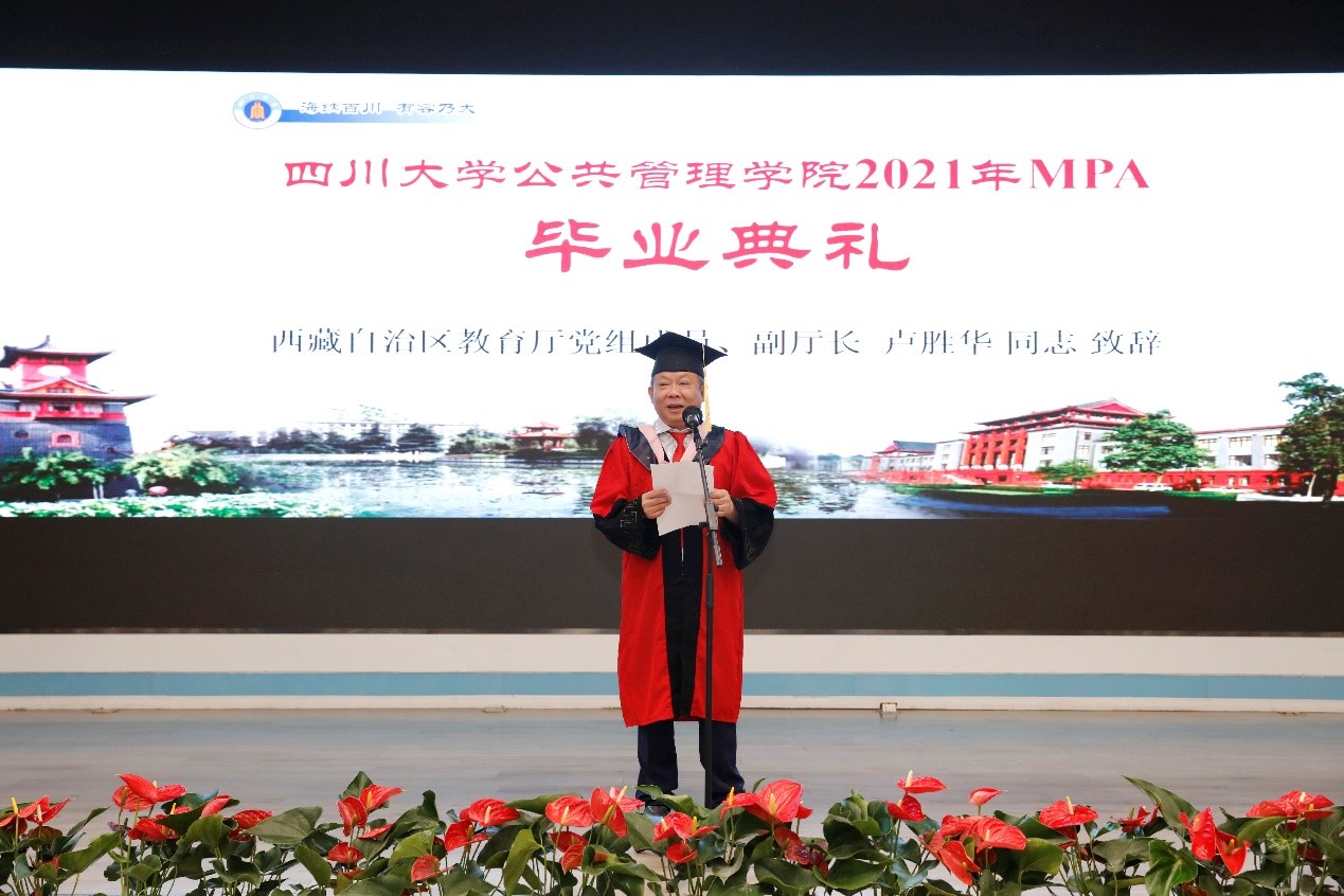 2021年7月10上午9点30分,好博体育2021年公共管理硕士(MPA)毕业典礼在好博东区三教演播厅隆重举行。出席典礼的领导及嘉宾有:好博党委副书记郭勇教授,四川省纪委常委、省人大常委刘光辉同志,西藏自治区教育厅党组成员、副厅长卢胜华同志,全国MPA教指委委员、好博公共管理公司党委书记姜晓萍教授、公共管理公司党委副书记杨磊老师、好博体育副经理罗亚玲副教授、好博体育MPA导师及任课教师、各班班主任以及行政老师、2020年和2021年MPA毕业生以及部分毕业生家属。典礼由好博体育副经理夏志强教授主持。