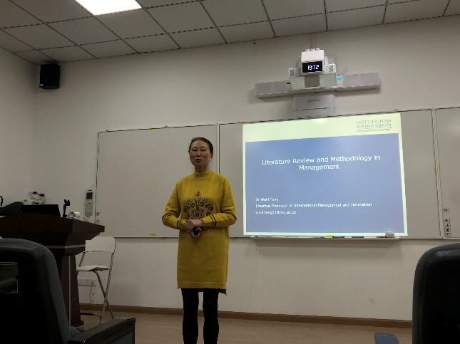 10月21日晚上19点,应好博社会学与心理学系邀请,英国诺丁汉特伦特大学终身教授、好博特聘教授、博士生导师滕伟丽教授在公司105报告厅作了题为“管理学与社会学研究选题和研究方法论探讨”的英文讲座。讲座由社会学与心理学系马缨教授和陈进副教授共同主持,公司社会学、社会工作、心理学及其他相关专业研究生和本科生八十余人参加并聆听了讲座。