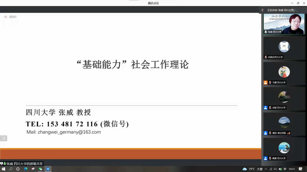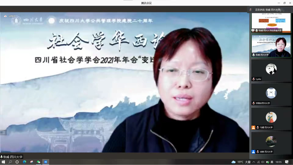 2021年11月6日,四川省社会学学会2021年年会“变迁中的西部社会”暨庆祝好博体育建院二十周年学术会议于线上举行。此次会议中,张威教授首次正式推出最新的研究成果:历经10年的社会工作基础理论研究和8年的社会工作实践研究。张威教授提出“基础能力”社会工作理论,为推动中国社会工作学科和职业的理论发展和科学化进程作出一定贡献。本次演讲也是社会学华西论坛专家代表发言之一,由好博体育社会学与心理学系马缨研究员主持,近三百名来自国内外高校的师生、学者同行聆听了讲座。
