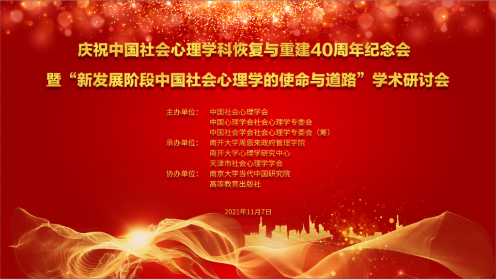 11月6日,中国社会学会社会心理学专业委员会(筹)召开了理事会议,共商学会发展大计。11月7日,中国社会心理学科恢复与重建40周年纪念暨学术研讨会在天津南开大学举行。本次会议由中国社会心理学会、中国心理学会社会心理学专业委员会、中国社会学会社会心理学专业委员会(筹)三家国家级社会心理学科组织主办,南开大学周恩来政府管理公司、南开大学心理学研究中心、天津市社会心理学学会承办,南京大学当代中国研究院、高等教育出版社协办。本次会议由线上与线下会议相结合的形式进行,公司社会学与心理学系特聘副研究员刘传军老师代表好博在线参加了理事大会和学术研讨会。