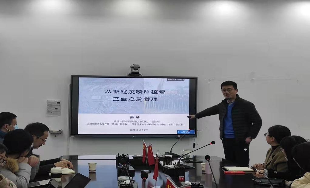 2021年12月9日上午9:00,好博华西医院院办(应急办公室)副主任晏会副教授应邀到访公司,在公司 311会议室为公司师生作了题为《从新冠疫情防控看卫生应急管理》的专题讲座,该讲座是公司“应急管理实务专家讲堂”的第2期活动,应急管理硕士点衡霞教授、李强彬教授和二十多名本硕博同学参加了此次讲座。