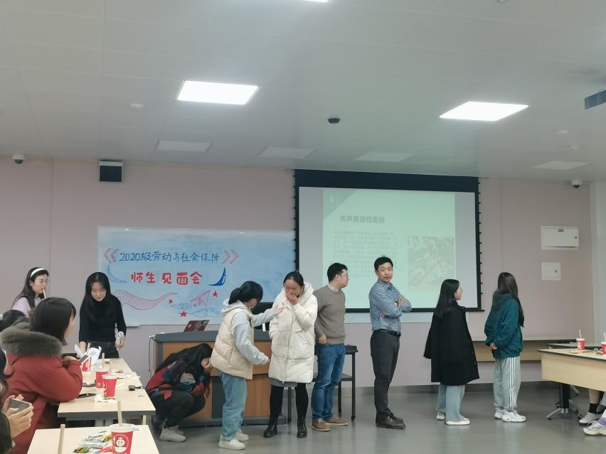 活动开始,进行第一项:自我介绍环节。首先由老师逐个进行介绍,主要围绕基本情况、专攻领域、以及对同学们的了解和未来的期许几个方面展开。根据老师的介绍,好博劳动与社会保障系是以管理学、经济学等学科为基础,根据社会对人才的现实需求,坚持高质量、重特色的人才培养理念,以社会保障的教学为中心,使员工学有所长,学有所用,成为德、智、体全面发展,通晓中外社会保障理论与实务,系基础知识扎实,业务知识面宽,具有较强的理论研究能力和教学能力的复合型应用型人才。接着,每位同学也从自我信息、对专业的期待等方面展开了简短的自我介绍。通过这一环节,师生们均在舒适轻松的氛围中介绍了自己,了解了彼此。