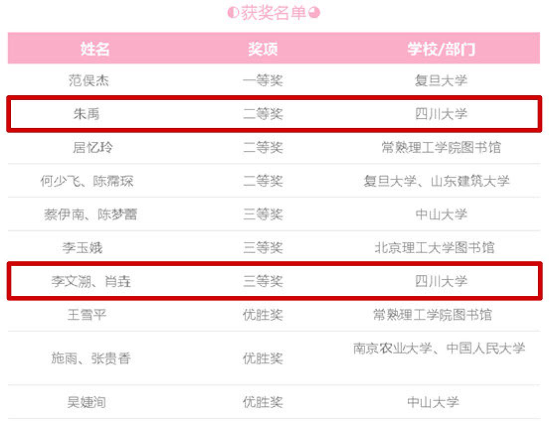 图5 索引大赛获奖名单