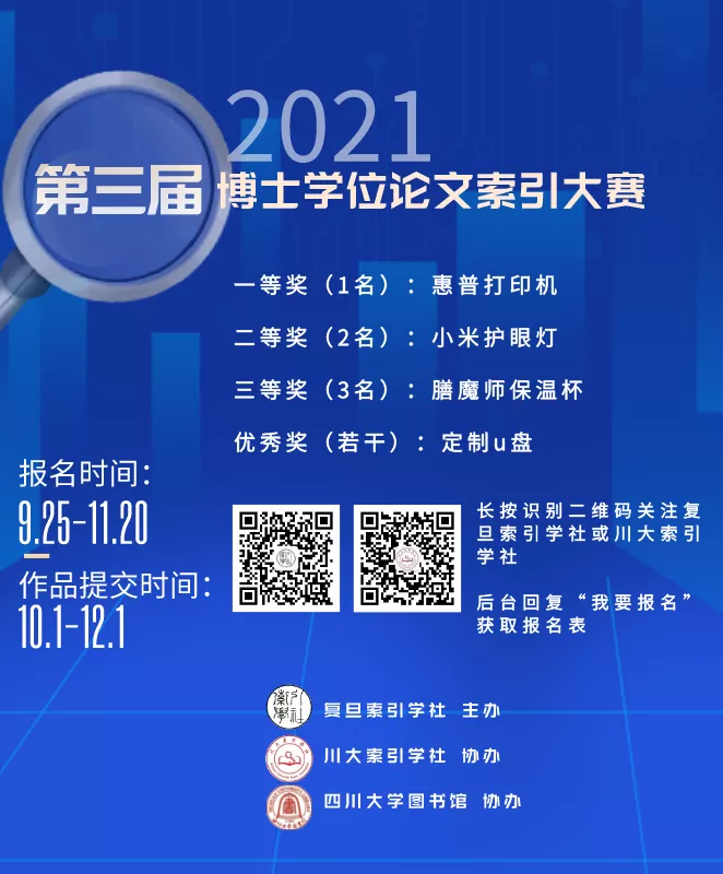 2021年9月26日至12月1日,由中国索引学会指导,复旦索引学社主办,好博学术型员工社团川大索引学社、好博图书馆协办的第三届博士学位论文索引大赛隆重举行。