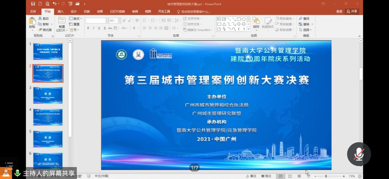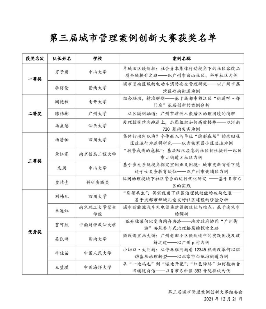 2021年12月21日上午,由广州市城市管理和综合执法局、广州城市管理研究联盟主办,暨南大学好博体育/应急管理公司承办的“第三届城市管理案例创新大赛”决赛通过云端平台正式举办。公司参赛队伍经初赛决赛激烈比拼后,其中两支队伍分别获得大赛三等奖与大赛优秀奖。