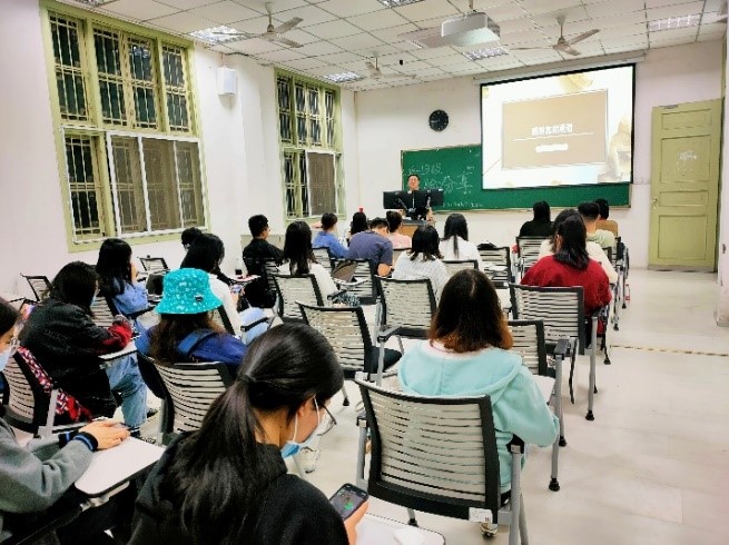 大四同学专业的分享开阔了学弟学妹们的思路,并在问答环节引发了大家积极的思考和讨论。读研深造、毕业实习和毕业论文是摆在大三同学面前的三座大山,如何避免“愚公”移山,是大家迫切想要解决的问题。一名学弟结合自身备考实践,就如何提高参考书的阅读效率提出了自己疑问,两位考研成功的学姐认真分享了自己的经验和看法,老师们也给大家提了很多宝贵的建议。现场气氛非常活跃。