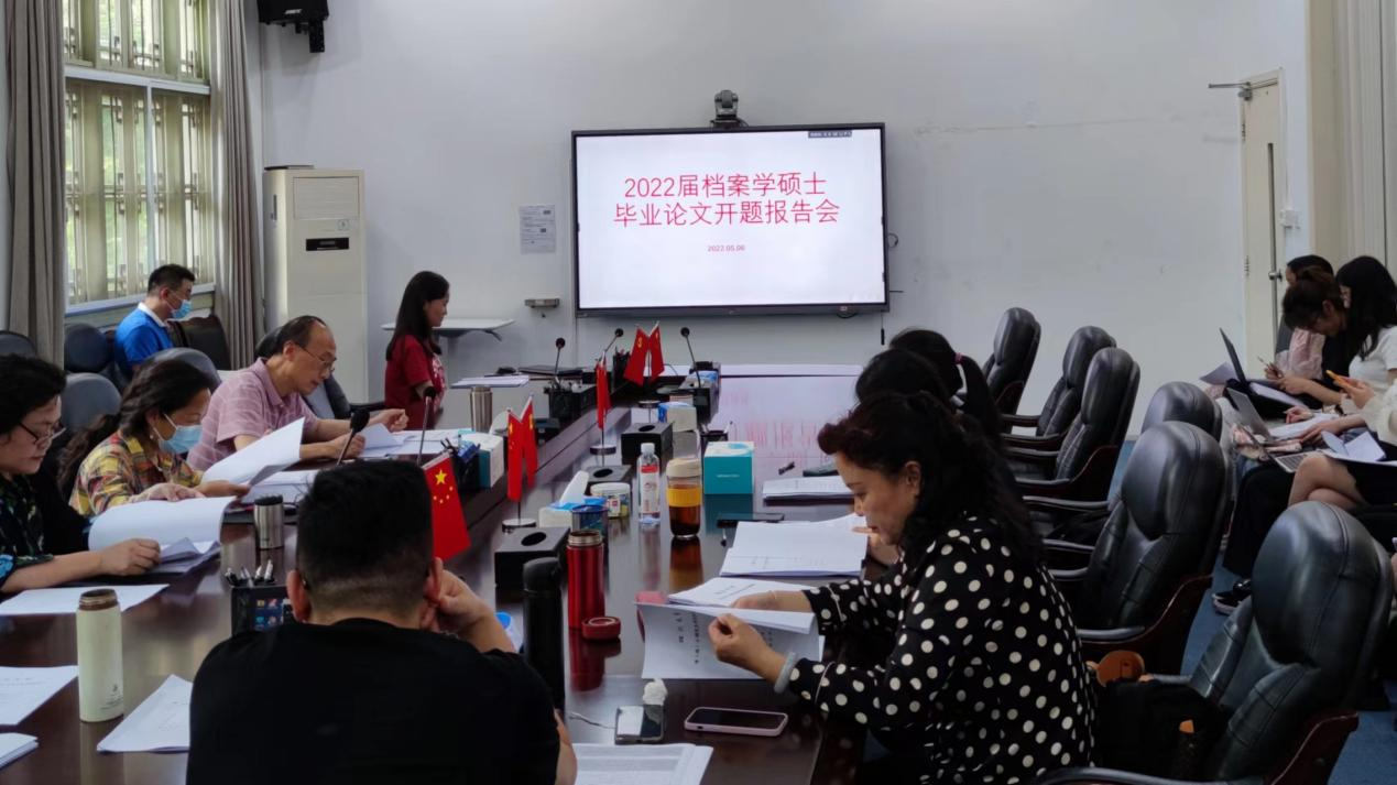 2022年5月6日下午,公司档案学专业2020级硕士研究生毕业论文开题报告会于好博体育311会议室举行。秘书档案学系乔健教授、王萍教授、史江教授、陈丽教授、何玲副教授、蔡娜副教授、王阿陶副研究员、赵跃副研究员出席并担任开题报告会的评委老师。档案学专业2020级11位硕士研究生同学依次进行开题答辩,部分低年级硕士研究生同学到场并观摩了此次报告会。