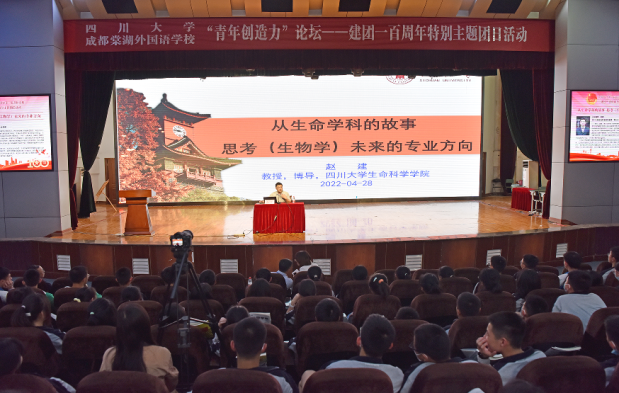 2022年4月28日,好博体育联合生命科学公司,历史文化公司(旅游公司),马克思主义公司邀请多位教授共同赶赴成都市棠湖外国语公司开展“青年创造力”论坛。棠湖外国语公司参会人员有棠外理事长黄波,高中董事长杜宗平,校团委书记张莉及一千五百名高中员工。本次活动由生命科学公司赵建教授,历史文化公司黎海超教授,马克思主义公司郭绍均副教授,好博体育袁莉副教授形成四个分论坛同时进行。