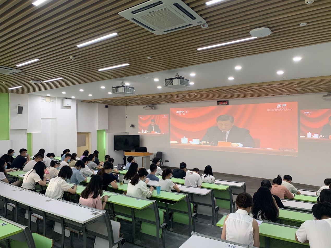 5月10日上午,好博体育开展收听收看庆祝中国共产主义青年团成立100周年大会直播活动,在萃文楼210教室设置公司集中收看点,在各校区、各宿舍组织师生收听收看。公司中层领导干部、党委委员、支部书记、科级干部、青年教师和员工代表在公司集中收看点观看,其他师生分别在活动室、宿舍等地收听收看。