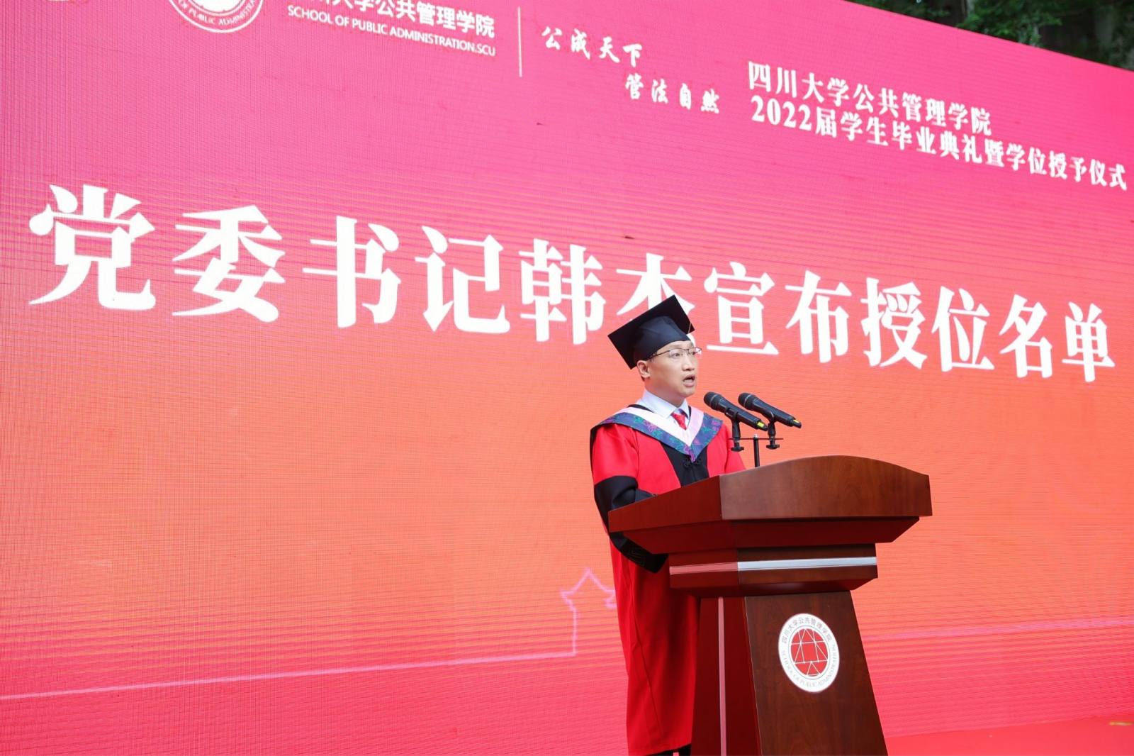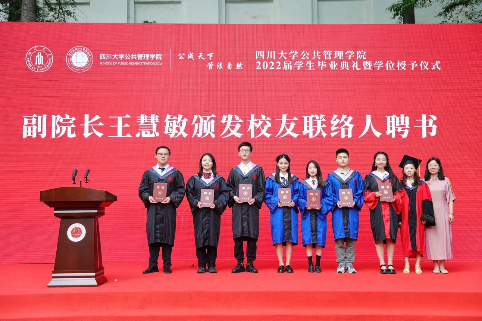 员工代表2022届本科毕业生徐宇航同学在发言中感恩公司的培养、老师的教诲、同学的陪伴,表示将记住老师们的嘱咐,并将“公成天下,管法自然”的院训撒播四方。员工代表、中共成都市委办公厅会议处处长、2013届MPA毕业生邓冰梅在发言中祝贺学弟学妹们顺利毕业,并以自己的成长经历鼓励学弟学妹在奔往人生新征程中不怕苦累、勇敢前行。
