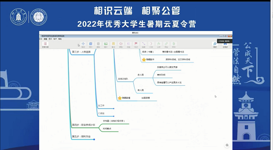 董家鸣博士通过思维导图,从初心问询、新手任务、人物选择、职业计划及顺利毕业五方面分享了如何做好学术规划,为营员们提前做好读研规划指明方向。
