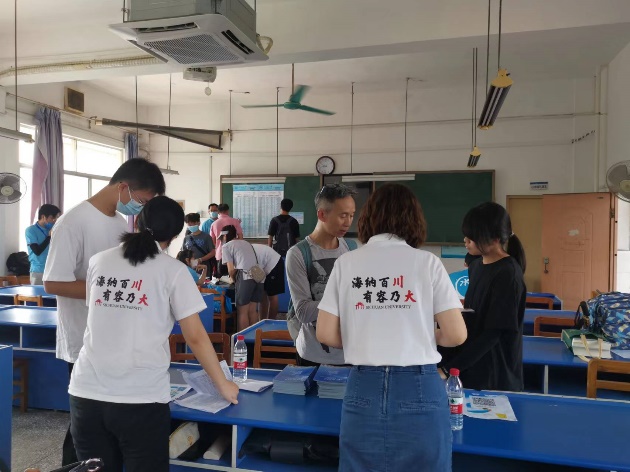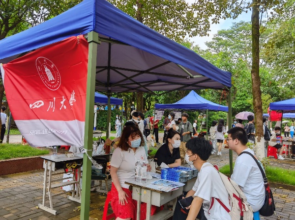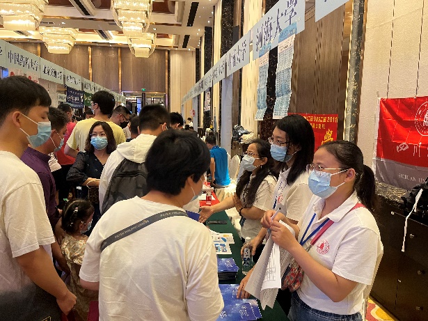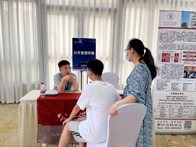 公管招生宣传工作组由档案学专业王萍教授,劳动与社会保障专业张浩淼教授,信息资源管理专业袁莉副教授,社会工作专业李诗颖副教授,专职组织员廖海燕老师和教学管理科四位老师参与,分别组成了三支招生小队同期赶赴广西多个城市参加当地各重点高中及社会场举行的高招会。6月25日,在南宁市青秀区、柳州国际会展中心两个会场同时举行;6月26日,在南宁市武鸣区、柳州铁一中学、桂林会展中心、桂林观光酒店四个会场同时进行;6月27日在钦州二中、桂林观光酒店两个会场同时进行,共八场与考生及家长面对面的线下咨询答疑活动。高招会现场人山人海,好博咨询点被员工和家长围的水泄不通,老师们一边分发宣传册一边为考生与家长做一系列关于成绩定位、招生计划、投档比例、录取原则、专业介绍和选择、志愿填报等详细的解读及建议。同时,还对好博进行了全面详细的介绍,吸引大批高二及准高三的考生对好博的兴趣,立下了好好学习把川大作为目标的决心。