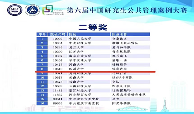 中国研究生公共管理案例大赛是我国公共管理领域规模最大、层次最高的研究生竞赛。公司MPA培养一直引导员工关注公共管理领域实际问题,提高员工运用相关理论和方法解决公共管理实际问题的能力。此次案例大赛成绩的取得,离不开公司、MPA中心及指导老师的支持与付出,离不开队员的协作与拼搏。好博体育MPA中心将继续立足西部,为培养公共管理人才贡献力量。