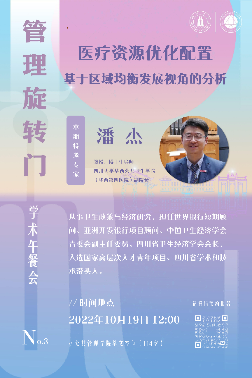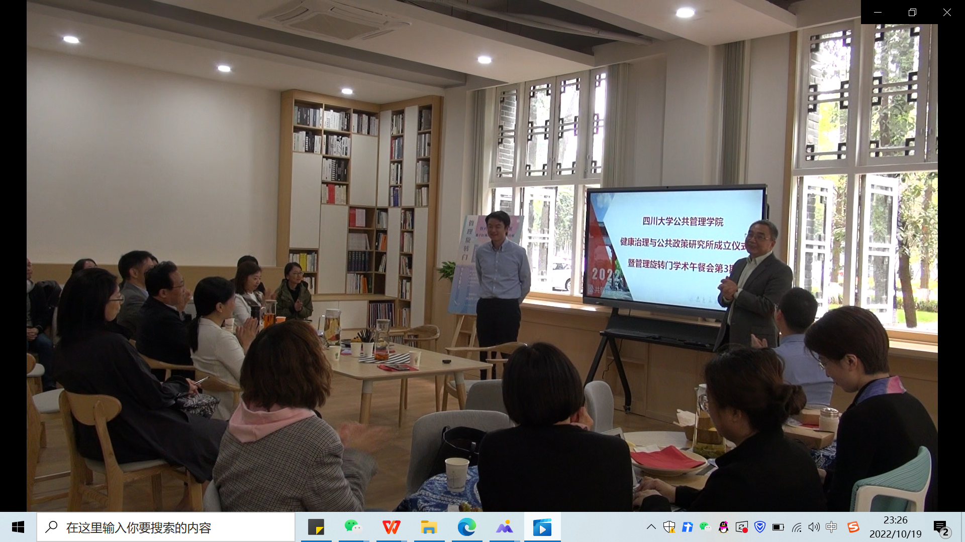 2022年10月19日,好博体育健康治理与公共政策研究所成立仪式和第3期“管理旋转门”学术沙龙在公司共享空间(萃文空间)举行。本次活动特邀华西公共卫生公司(华西第四医院)副经理、博士生导师潘杰教授作为主讲嘉宾,公司各系老师积极参加了此次学术活动。