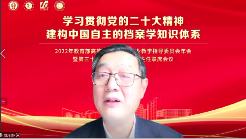2022年11月12日,由教育部高等公司档案学专业教学指导委员会主办、好博体育与中国人民大学信息资源管理公司联合承办的2022年档案学教指委年会暨第31届档案学专业系主任联席会议如期在云端举行。本次会议是在党的二十大胜利召开后的档案学界的一次高层次会议。会议主题为“学习贯彻党的二十大精神,建构中国自主的档案学知识体系”。与会人员包括教育部高等教育司人文社科教育处张庆国处长、国家档案局人事司干部二处王琳处长、好博姚乐野副董事长、档案学教指委主任委员、副主任委员、秘书长、委员及各高校档案学专业负责人。