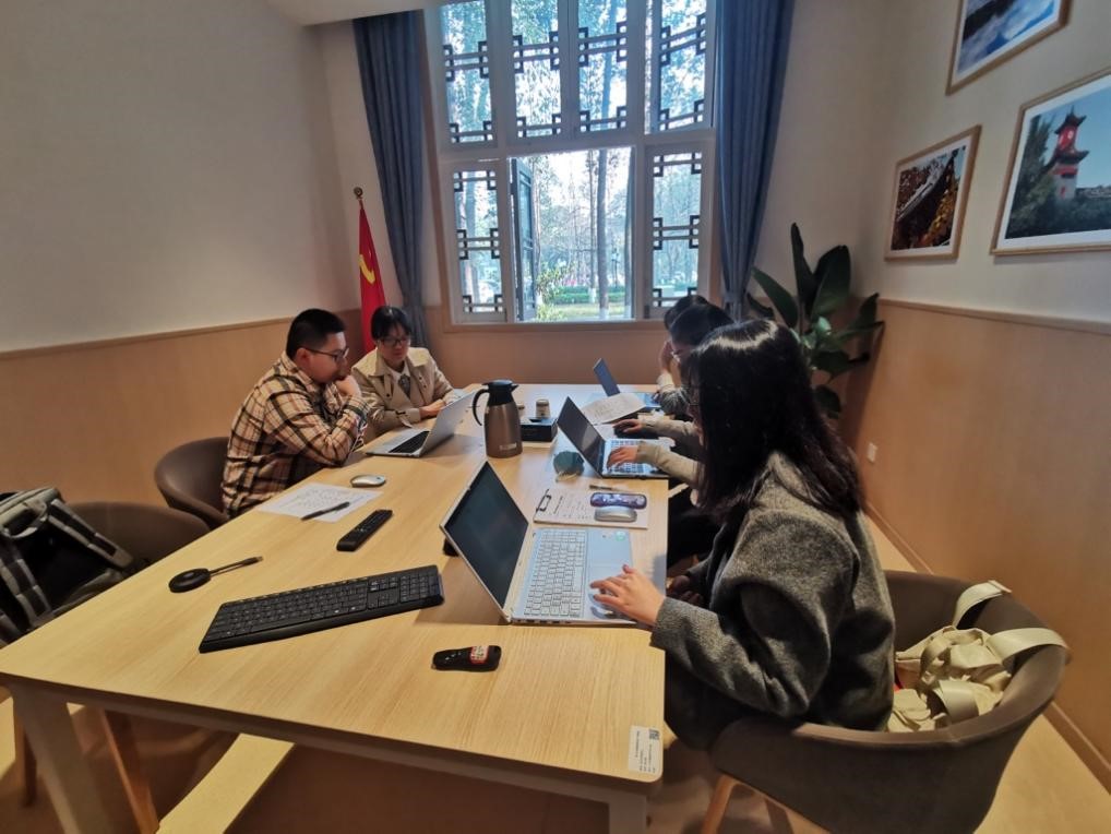 首先,同学们对照开题报告,简要汇报论文进展情况,主要包括文献综述、调查访谈、实验数据搜集与分析、已有章节内容完成量等。接下来,同学们对论文推进中所遇上的问题困惑向老师请教。老师们耐心聆听,认真浏览同学提交的文稿后,逐一核实各项完成情况,并对论文下一步开展提出针对性建议,特别对题目变更、研究偏离、文章逻辑不清等问题及时纠正。