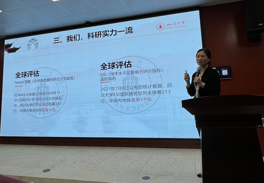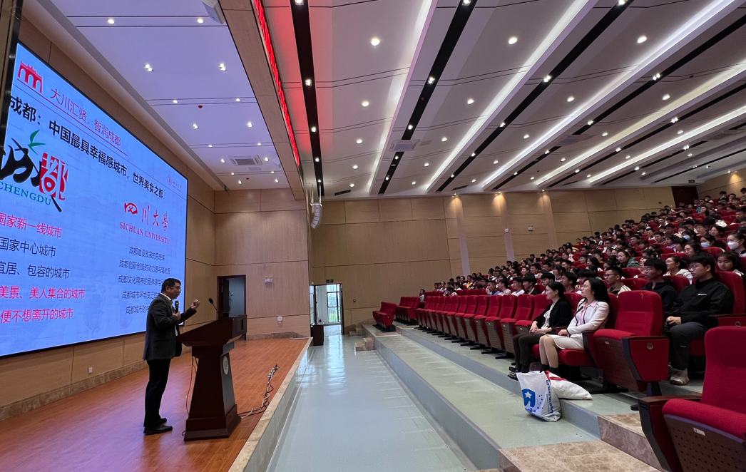 下午,招生组来到广西另一所名校柳州铁一中学,与该校领导及高三年级组相关老师进行深度交流。随后,招生组老师为高一、高二的员工进行了讲座,廖爱民副主任介绍了好博的办校历史、本科教育、学科实力及校园环境,希望在同学心中播下一颗报考川大的种子。曾菊梅副教授为同学们带来《魔高一尺,道高一丈:传染病药物发现》的科普讲座,用简洁易懂的语言向同学们介绍医学类相关知识,点燃同学们从事科学研究的热情。