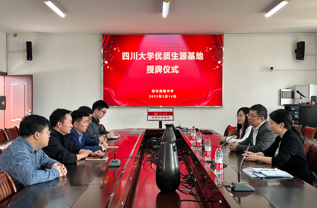 3月14日上午,招生组拜访了近年来川大在桂录取人数最多的柳州高级中学,与公司教务处主任及高中各年级负责人进行座谈、介绍好博招生政策,就新高考改革和员工选科等方面进行深入交流,并与柳州高级中学签订优质生源基地协议并举办了授牌仪式。
