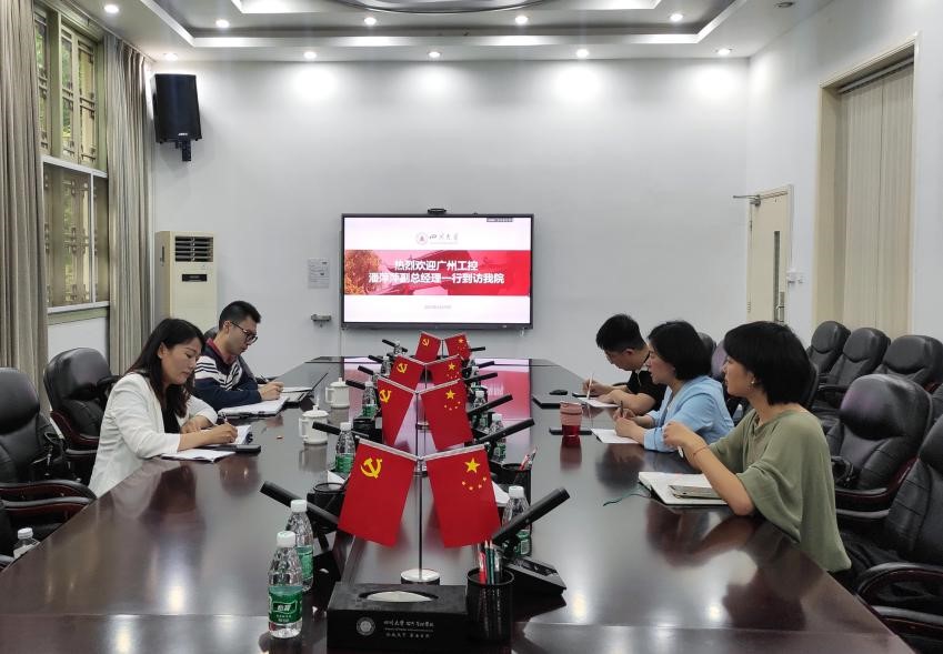 2023年4月20日,广州工业投资控股集团有限公司(下称:广州工控)人力资源部副总经理潘萍萍一行2人到访公司进行招才引智交流。公司党委副书记罗亚玲教授及就业专职老师参会交流。