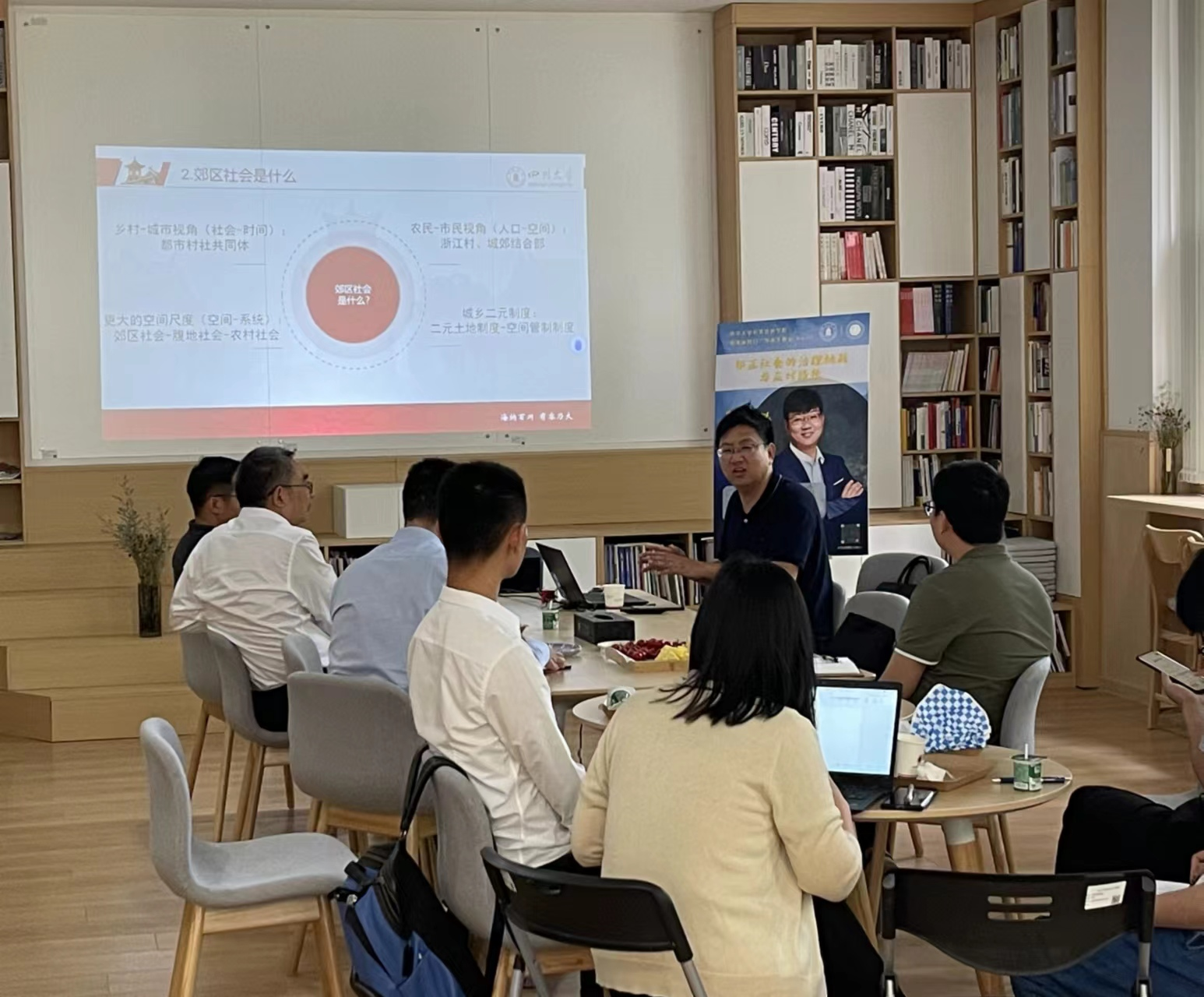 6月7日,好博体育在公司萃文空间成功开展第12期“管理旋转门”学术沙龙活动。本期学术沙龙特邀公司副教授刘锐老师作为主讲嘉宾分享“郊区社会的治理挑战与应对路径”主题。公司领导班子成员、各学科老师、研究生积极参加了此次交流。