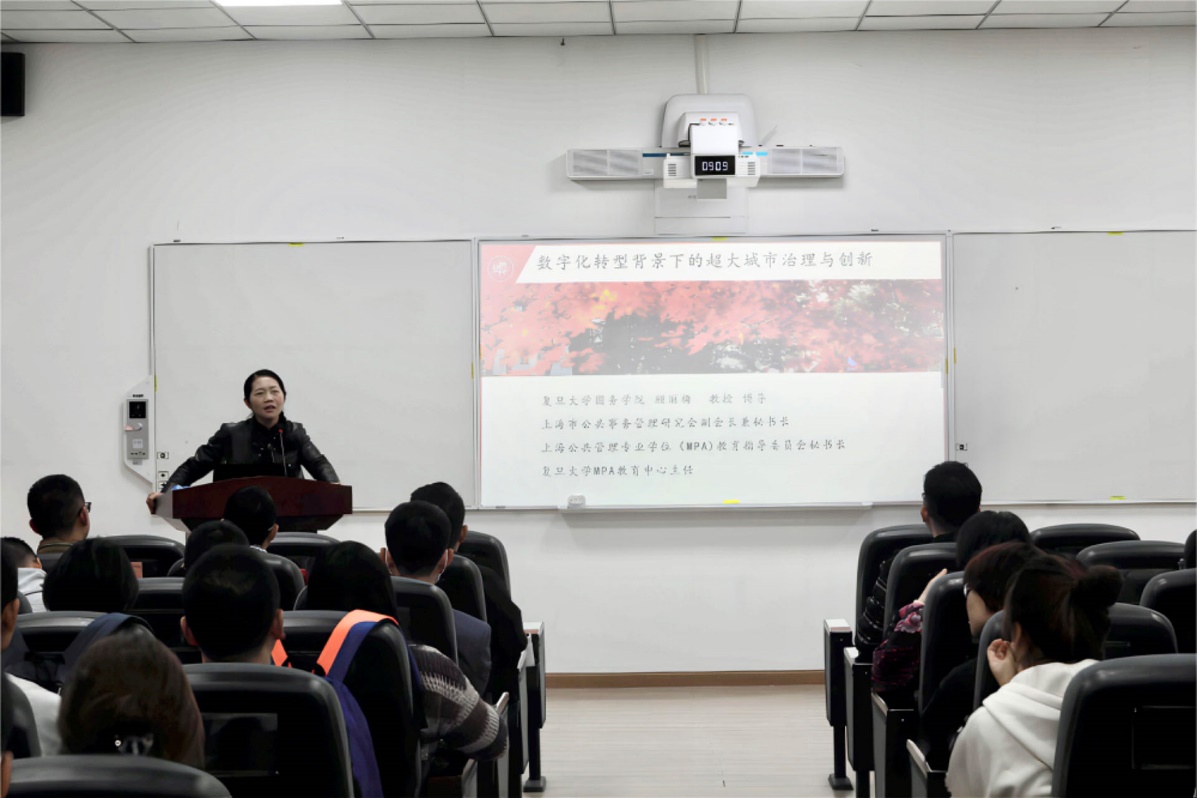 10月20日上午,复旦大学MPA中心主任、博士生导师顾丽梅教授为公司研究生作题为“数字化转型背景下的超大城市治理与创新”的讲座。讲座由黄静教授主持。