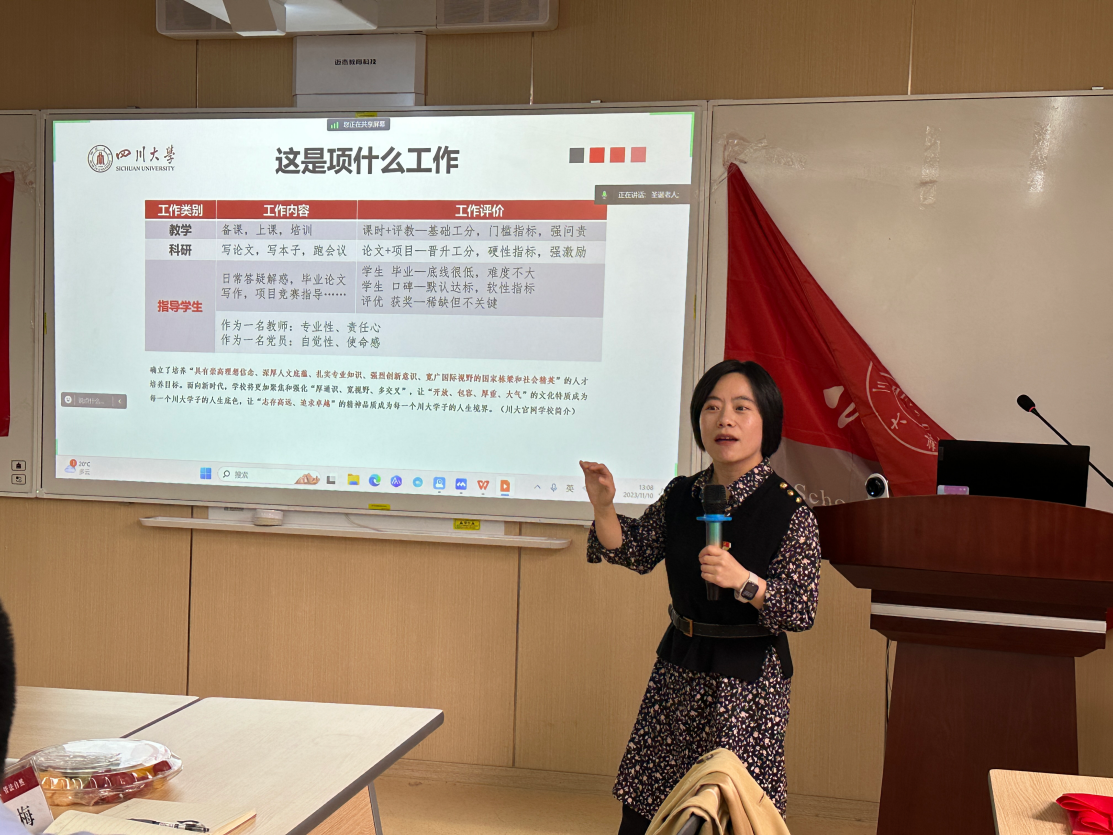 李晓梅老师以如何指导员工为题,分享了立德树人的师匠精神。她指出身为一名教师,应将教学与科研融入到员工的培养中,做到回应员工、帮助员工、指导员工,和员工建立联系,构建信任,共同成长和进步。
