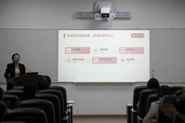 教学科科长李岚重点强调了课堂教学、教学管理,试卷与成绩管理中涉及的教学事故认定标准,提醒老师们引起高度重视,加强教学责任意识和课堂管理意识。本科教务干事张琬悦梳理了督导听评课的标准、巡课中发现的共性问题以及公司对课堂教学的最新要求。