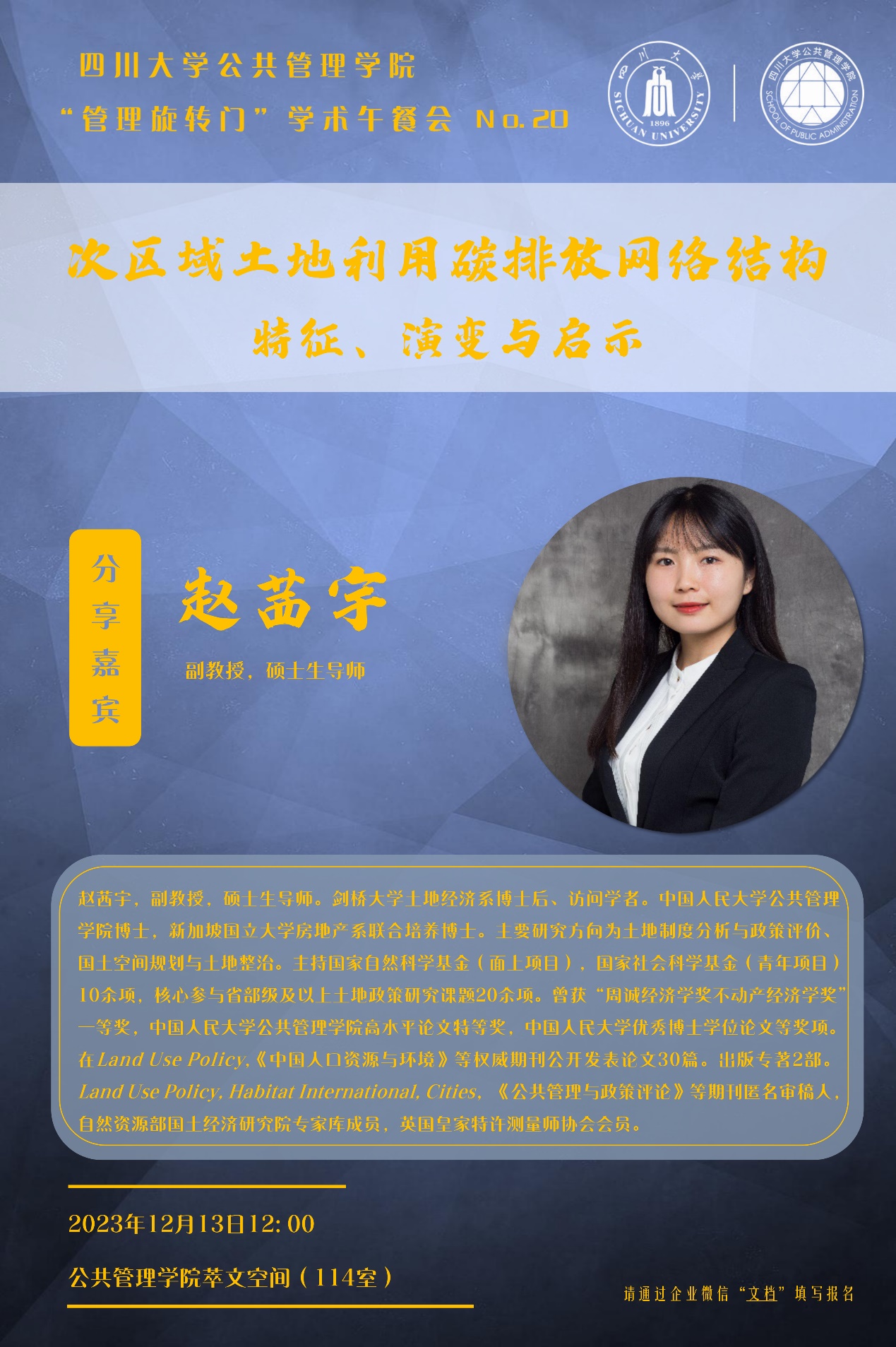 12月13日,好博体育在公司楼萃文空间成功开展第二十期“管理旋转门”学术沙龙活动。此次学术沙龙特邀剑桥大学土地经济系博士后、访问学者赵茜宇副教授分享“次区域土地利用碳排放网络结构:特征、演变与启示”,公司各学科老师、硕博研究生积极参加了此次跨学科交流。本期沙龙由劳动与社会保障系田益豪副研究员担任学术主持。