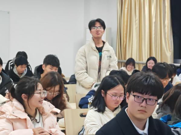 在互动交流环节,同学们大胆问出自己心中的困惑。关于同学们对职业疲劳期的好奇与思考,老师们指出,个人兴趣与热爱很重要,努力实现理想与现实的同频共振等。