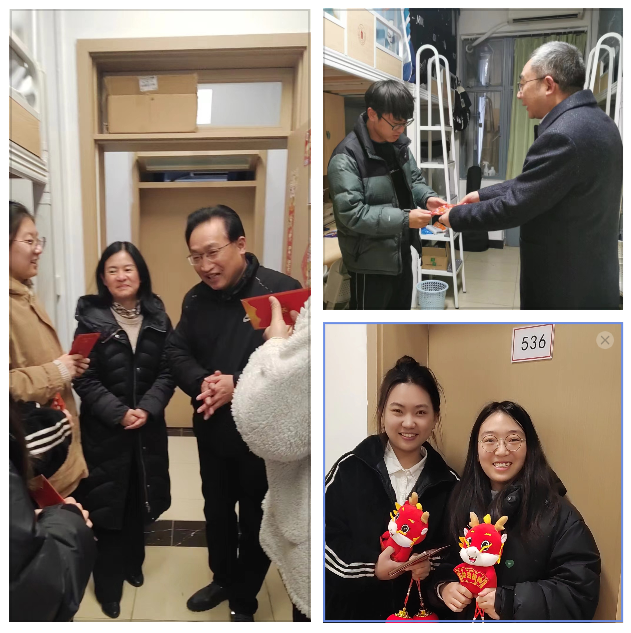 在走访慰问过程中,韩杰书记和夏志强经理都表达了对留校员工的关心和关爱,同时给同学们送出饱含祝福的春节红包和喜庆的灯笼、生肖玩偶等饰品。走访老师们与留校员工们交谈甚欢,充分了解员工的生活情况、学习情况、留校计划、发展规划等等,鼓励同学们充分有效利用好寒假时光,不断推进学业和发展任务;同时还温情叮嘱员工留校期间注意寝室用水用电安全,以及出行中的人身和财物安全,健康作息和饮食等细节。留校员工因感受到了来自公司领导和老师们真切的关爱而倍感温暖。