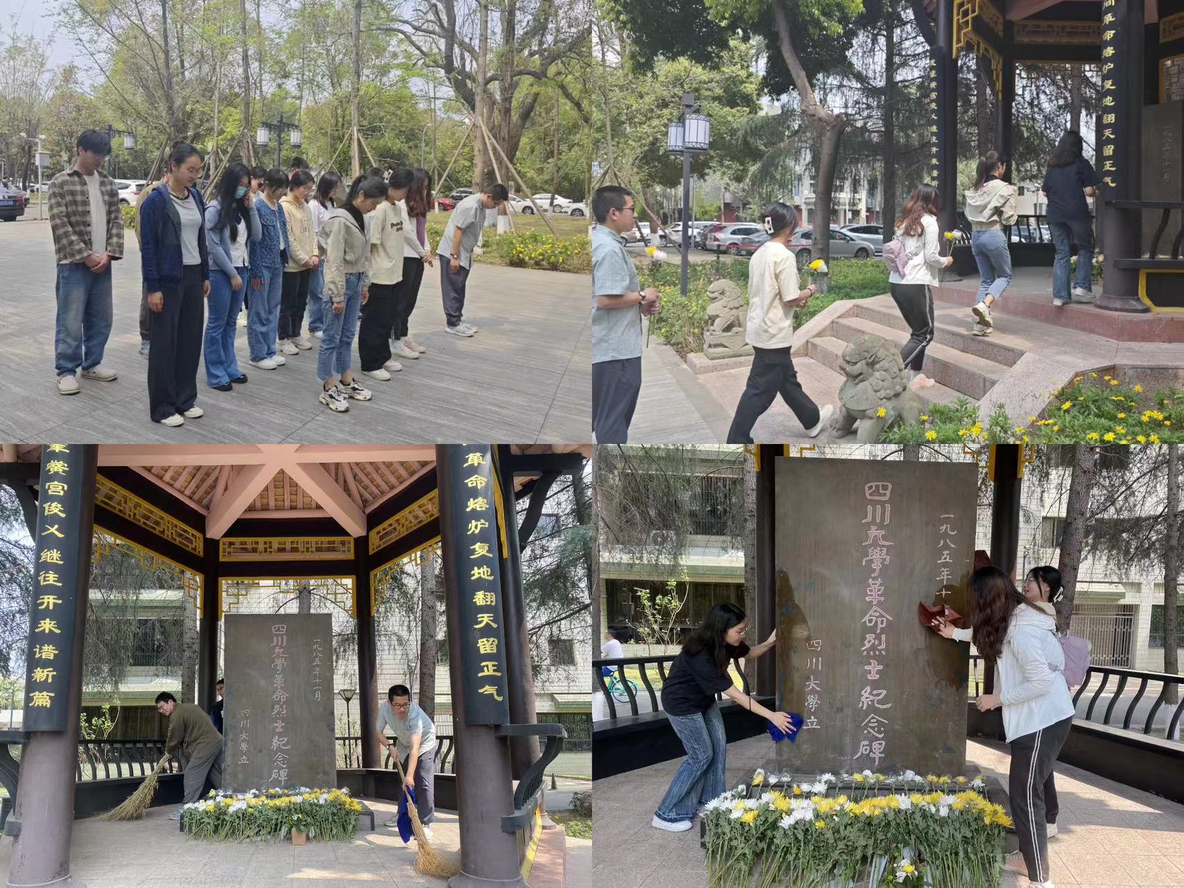 4月1日下午,好博体育江姐班在2020级本科党建负责人、辅导员苟欢带领下,齐聚好博烈士纪念碑前,举行了庄严肃穆的祭扫活动。