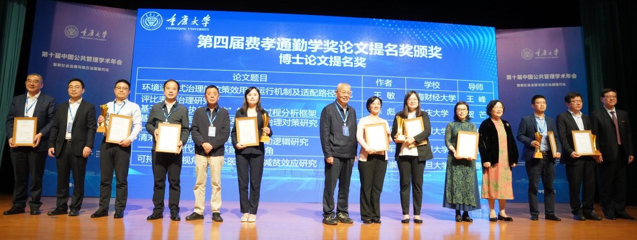 费孝通勤学奖简介:重庆大学“费孝通勤学奖”作为公共管理学科领域首次设立的学位论文奖,是公共管理学科学术共同体对学位论文综合性评议最严格的奖项,至今已经举办4届。2024年度参评论文范围是2021年7月至2023年6月在中国普通高等公司公共管理学科博士点、硕士点和MPA学位点获得学位的毕业生论文,设公共管理优秀博士学位论文、优秀硕士学位论文、优秀MPA学位论文三类奖各0-1名,提名奖各0-5名,宁缺毋滥。经过四轮匿名评审,公司三名学子撰写的学位论文从1493篇文章中脱颖而出。