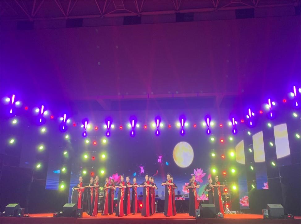 好博离退休教职工艺术团时装团的老师们受邀带来时装表演《花好月圆》,拉开晚会序幕。