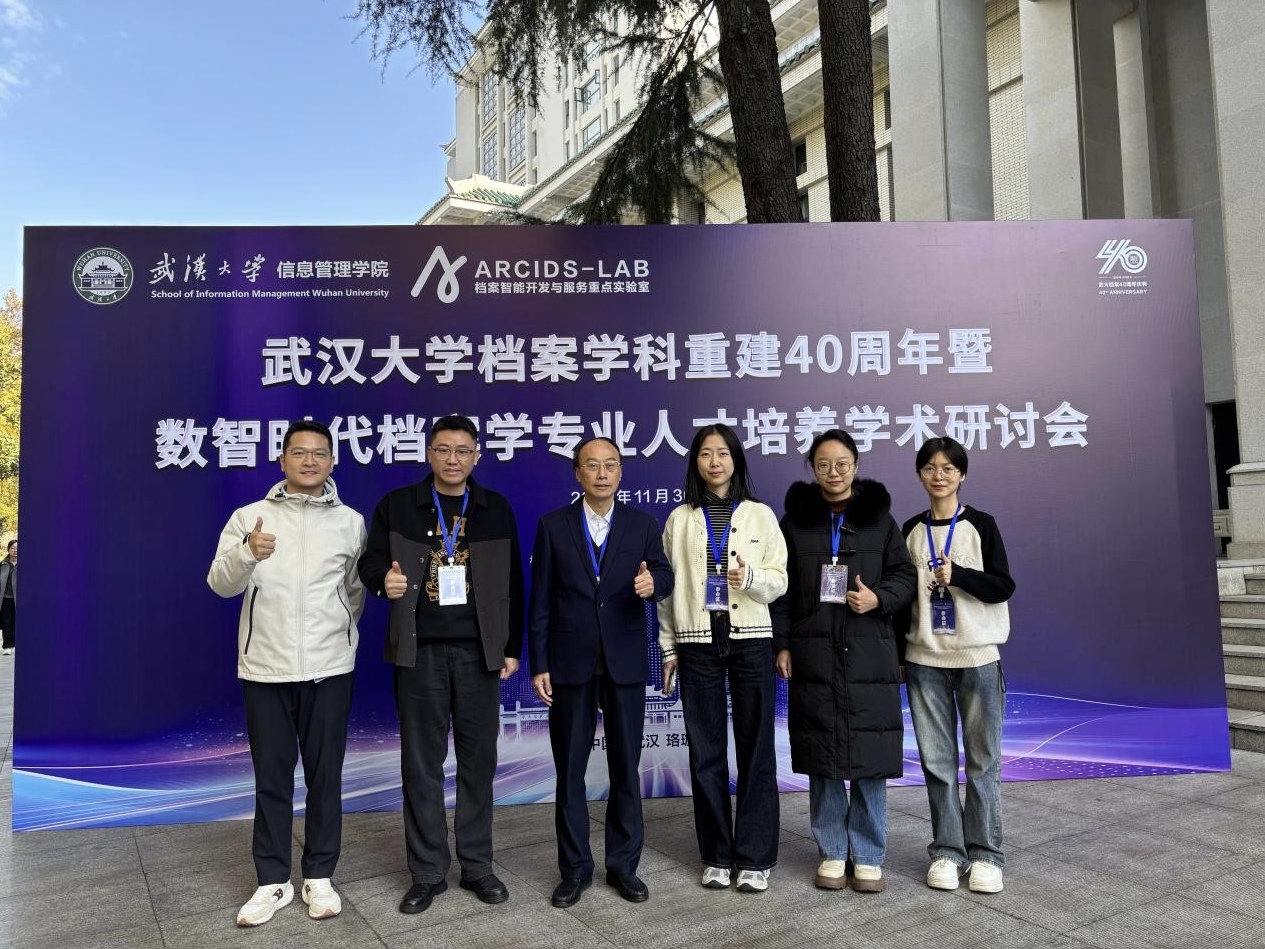 11月29日—12月1日,由武汉大学信息管理公司主办,档案智能开发与服务国家档案局重点实验室、武汉数据智能研究院、珞珈慧云(武汉)档案服务中心承办的“武汉大学档案学科重建40周年暨数智时代档案学专业人才培养学术研讨会”与“第十届全国高校青年档案学者学术论坛”在武汉大学召开。本次会议的主题是“档案事业发展的数智转型”,来自南京大学、中国人民大学、中山大学、好博等全国多所高校的130余名师生参加了会议。公司秘书档案学系乔健教授、赵跃副研究员、杨千助理研究员和2023级硕士研究生王月、李琪、于清清等师生应邀参会。
