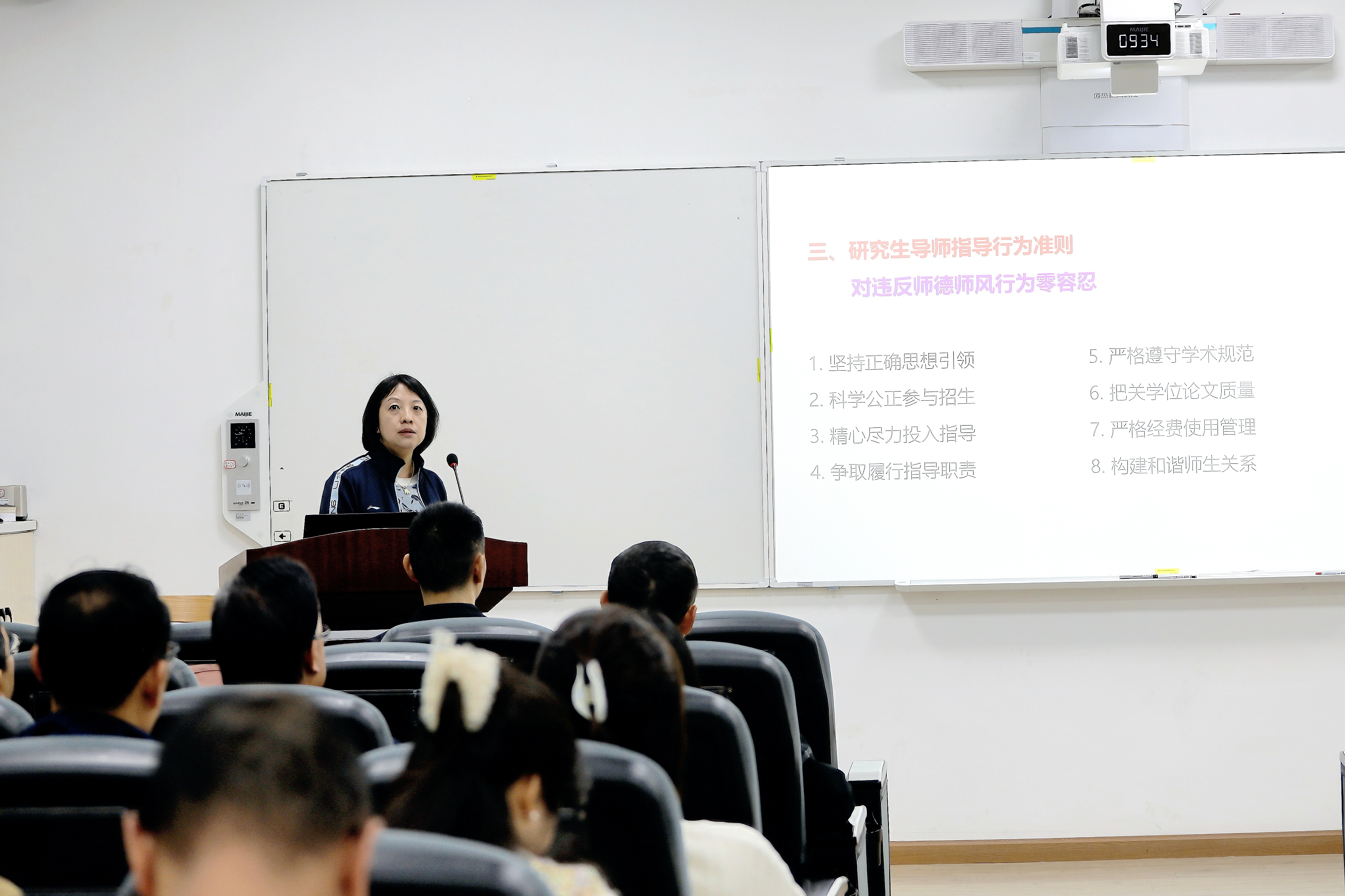 培训会上,教学管理科李岚老师对导辅协同育人、研究生导师行为准则、课堂教学及督导情况、新一轮导师动态上岗考核办法、员工奖助金等方面的政策作了系统梳理和解读。吴丹老师对研究生信息系统导师操作部分进行了演示。