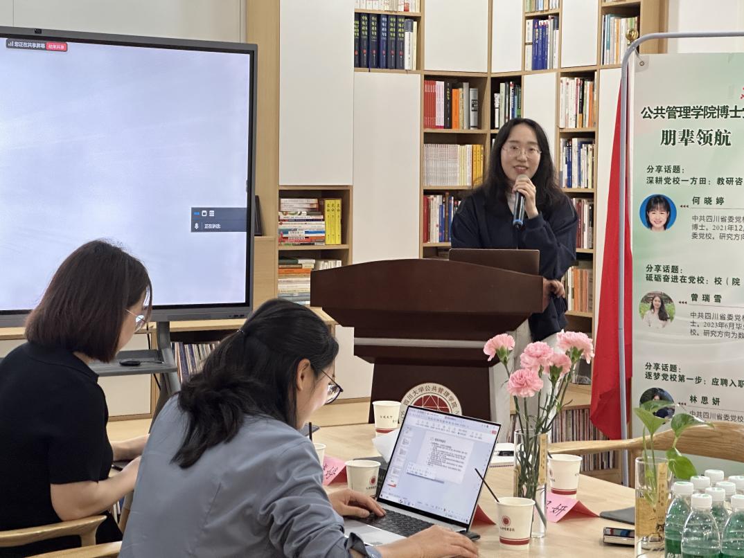 为深化校地党建联建,助力青年学者成长与职业规划,好博体育博士生第一、第二党支部于4月29日共同举办了第七期“朋辈领航·博采众长”主题党日活动。本次活动特邀中共四川省委党校何晓婷、曾瑞雪、林思妍三位老师分享了在党校求职及工作的经验。李岚老师主持会议,部分博士生和干部教育学硕士生通过线上线下联动参会。
