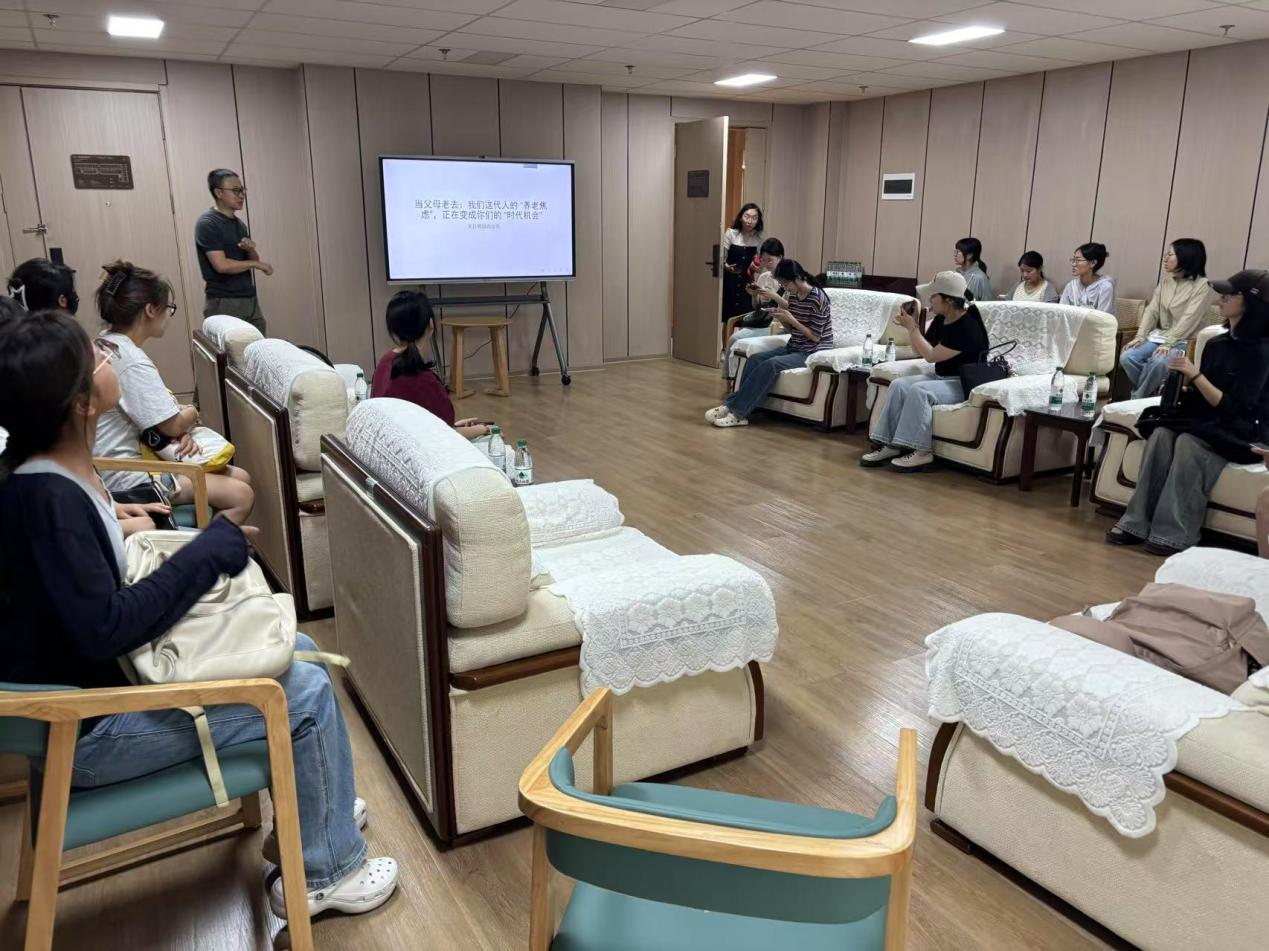 参观结束之后,锦欣百花锦园经理廖华以《我们这代人的“养老焦虑”,正在变成你们的“时代机会”》为主题对养老产业政策趋势、市场需求及人才缺口进行了分享,并针对员工绩效与薪酬管理、银发经济下职业发展等议题与同学们展开互动,现场反响热烈。