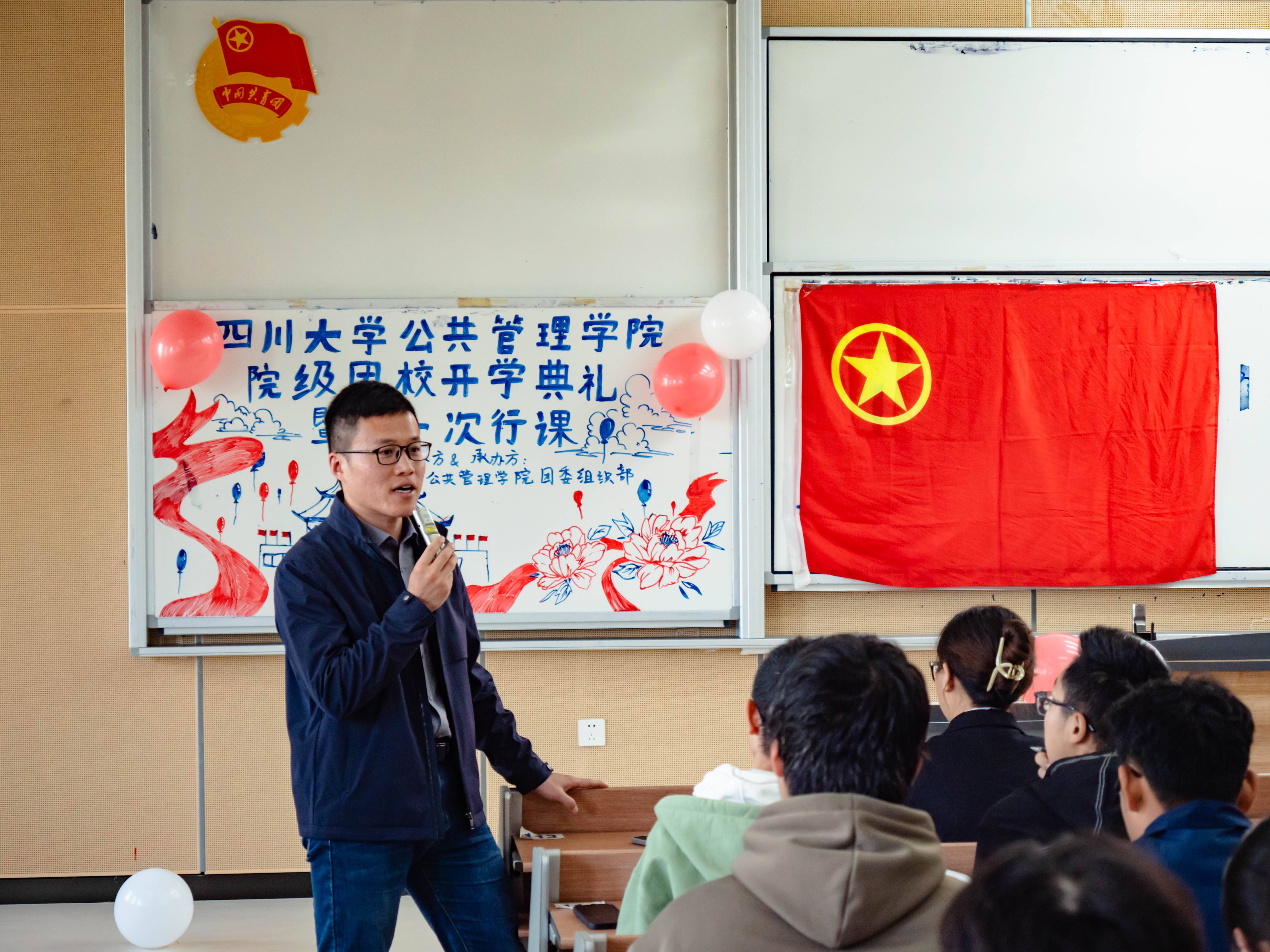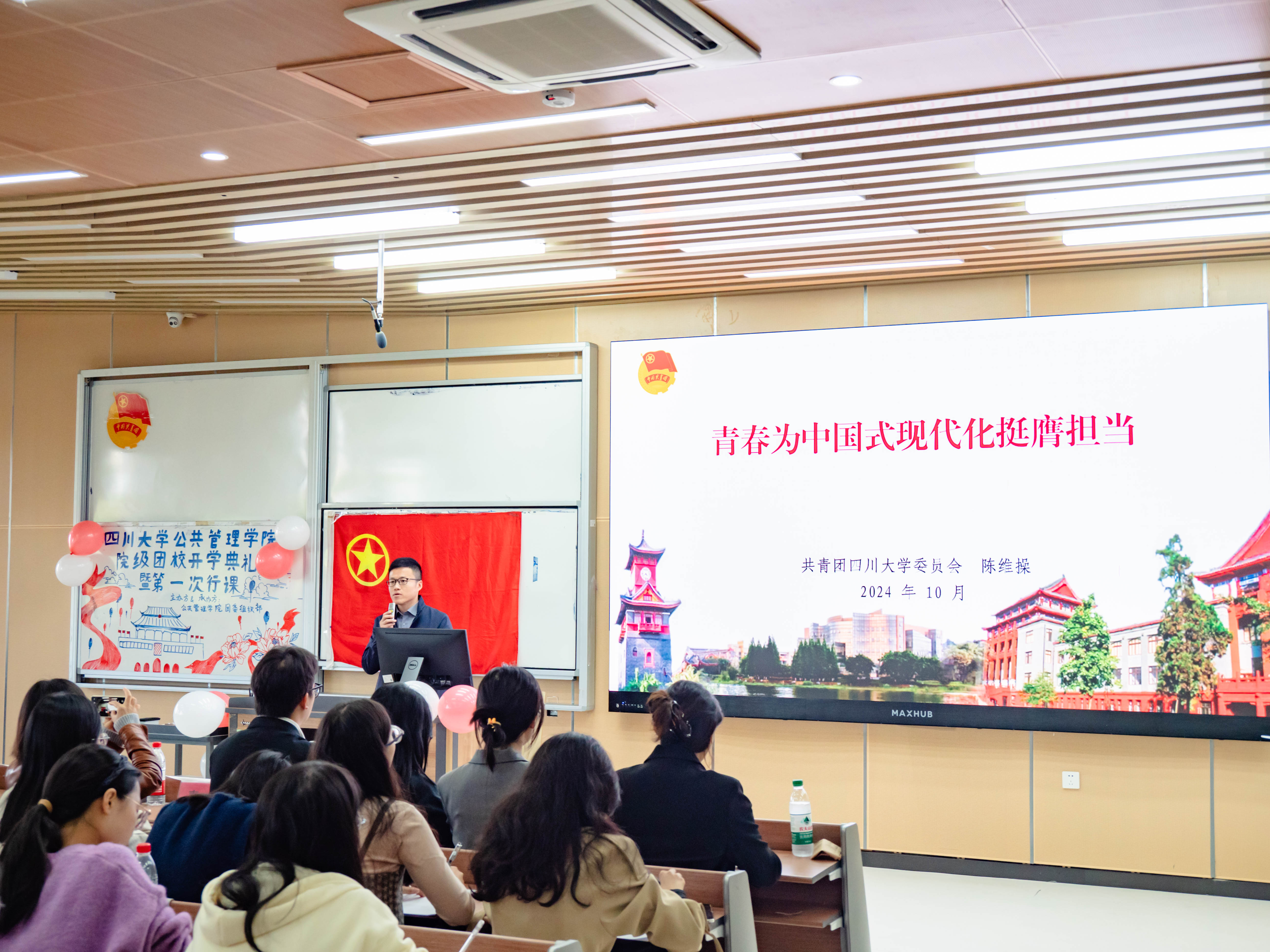 陈维操以“青春为中国式现代化挺膺担当”为主题,聚焦于四个方面进行授课。他从历史上的中国青年奋斗史引入,详细说明了青年与时代息息相关、同频共振。同时结合党的二十届三中全会精神,对当代青年所面临的“内卷”现象进行深入分析与探讨。他提出,团委是服务同学的载体,应聚焦创新意识能力培养,促进智育赋能,更好服务同学。最后,他号召新时代青年坚定理想信念,敢于担当、拼搏奋斗、阳光自信,积极投身于社会主义建设中去,热爱集体、报效祖国。