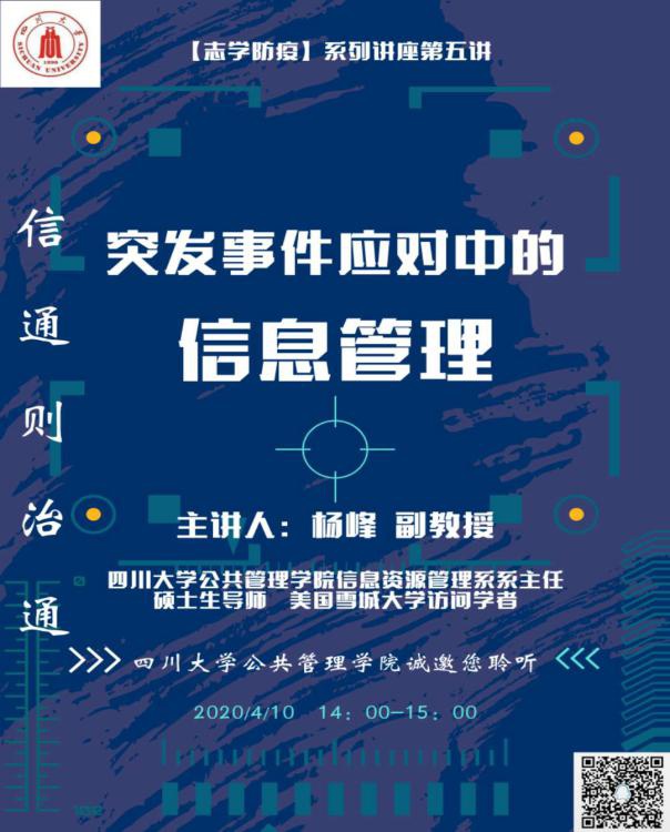 2020年4月10日下午2:00,好博体育信息资源管理系系主任杨峰副教授应邀为2019级本科同学作“突发事件应对中的信息管理”主题讲座。