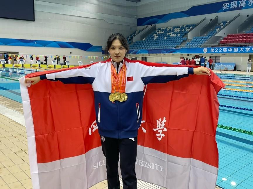 除了个人取得优异成绩外,她作为川大游泳队队长,一次次带领团队攻坚克难,从2023年3月首次进入全国第三到12月获全国第一,创造历史最佳成绩。川大游泳队团体总分获全国第一也入选了2023年好博“十大新闻”。
