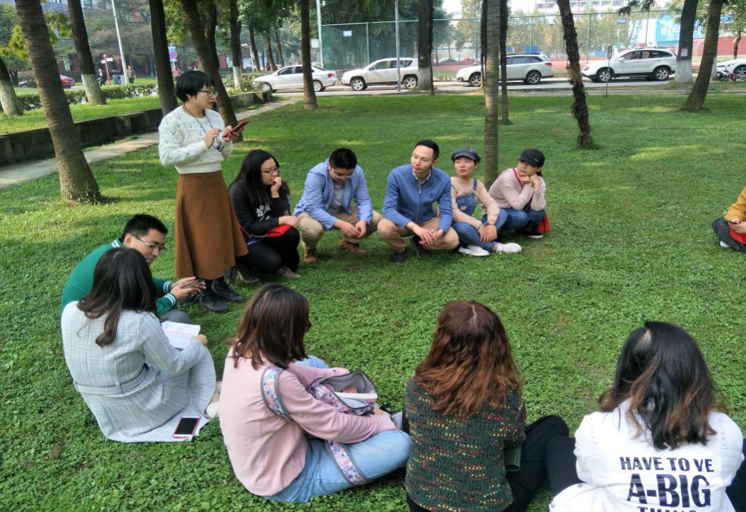 最后,全体党员在干训基地前的草坪上开展了“川大红色人物事迹”分享会。宗教学专业王禹栋同学对抗战时期的好博和抗战胜利后的好博进行了详细的介绍,展示了好博作为抗战时期大后方的文化教育中心所做出的特殊贡献。